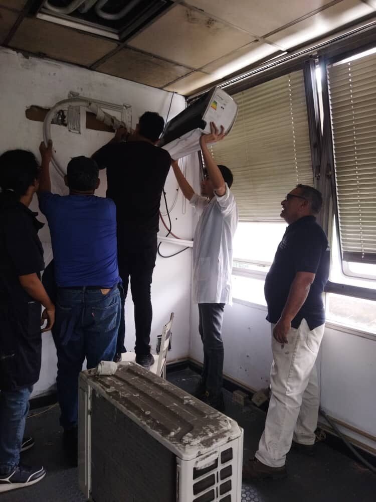 Prensa UPTECMS.- El Equipo Mantenimiento 4.0 de la Dirección de Producción, de la Universidad Politécnica Territorial de Caracas Mariscal Sucre (UPTECMS) llevó a cabo un trabajo de mantenimiento preventivo en la unidad de aire acondicionado de 18.000 BTU ubicada en el área de Soporte Técnico de la sede Antimano.