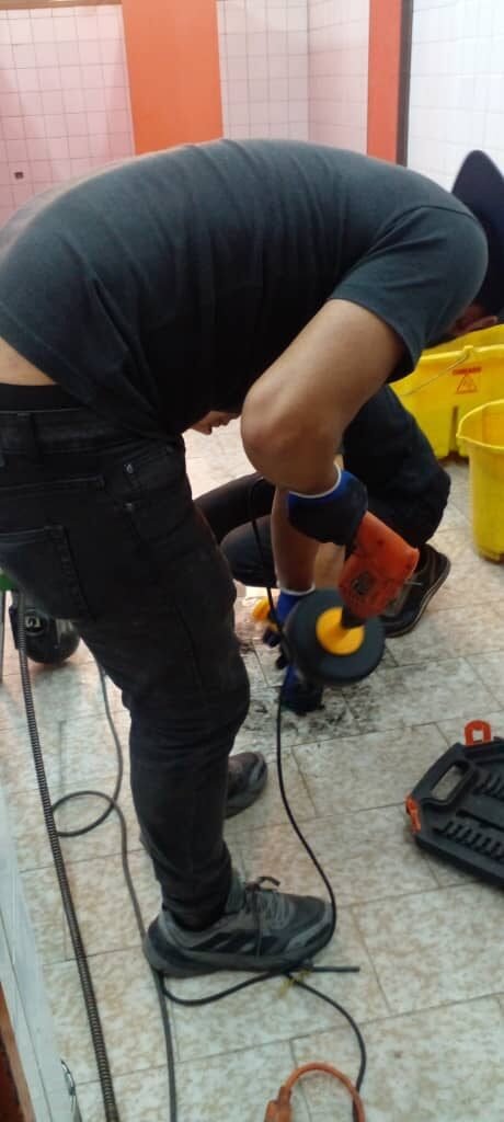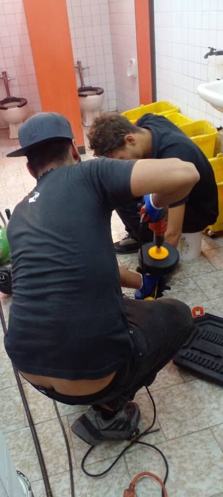 Un grupo de estudiantes de la Universidad Politécnica Territorial de Caracas Mariscal Sucre (UPTECMS), realizan labores de destape de tuberías en los baños de la institución. Esta iniciativa auspiciada por la Ing. Ciraliz Chincilla, directora de Planta Física, busca mejorar las condiciones sanitarias de la universidad y fomentar la formación práctica de los estudiantes en el manejo de problemas de infraestructura.
