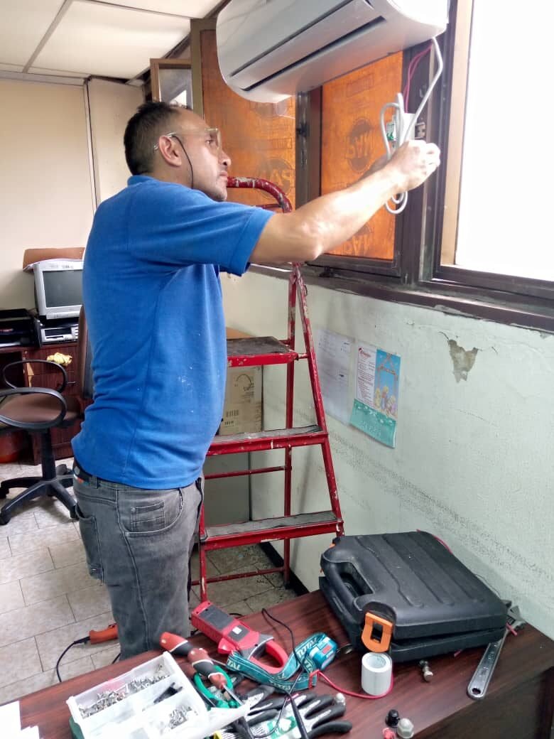 Gracias al apoyo de la dirección de Planta Física, liderada por la Ing. Ciraliz Chinchilla, se llevó a cabo la reciente instalación del primer aire acondicionado en la Dirección de Gestión Administrativa, ubicada en la sede de San Martín de la Universidad Politécnica Territorial de Caracas Mariscal Sucre (UPTECMS), este importante proyecto se realizó con el objetivo de mejorar el ambiente laboral y proporcionar mayor comodidad tanto para el personal administrativo como para los visitantes.