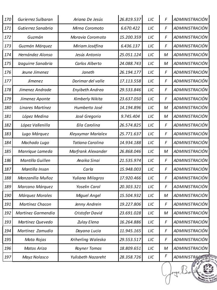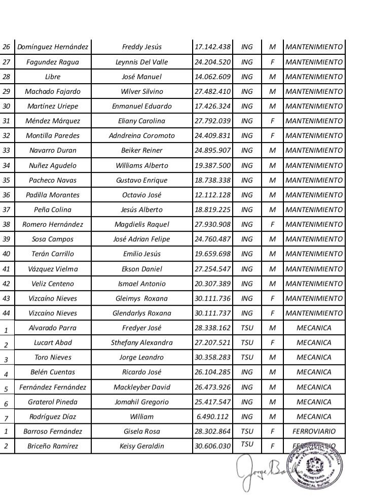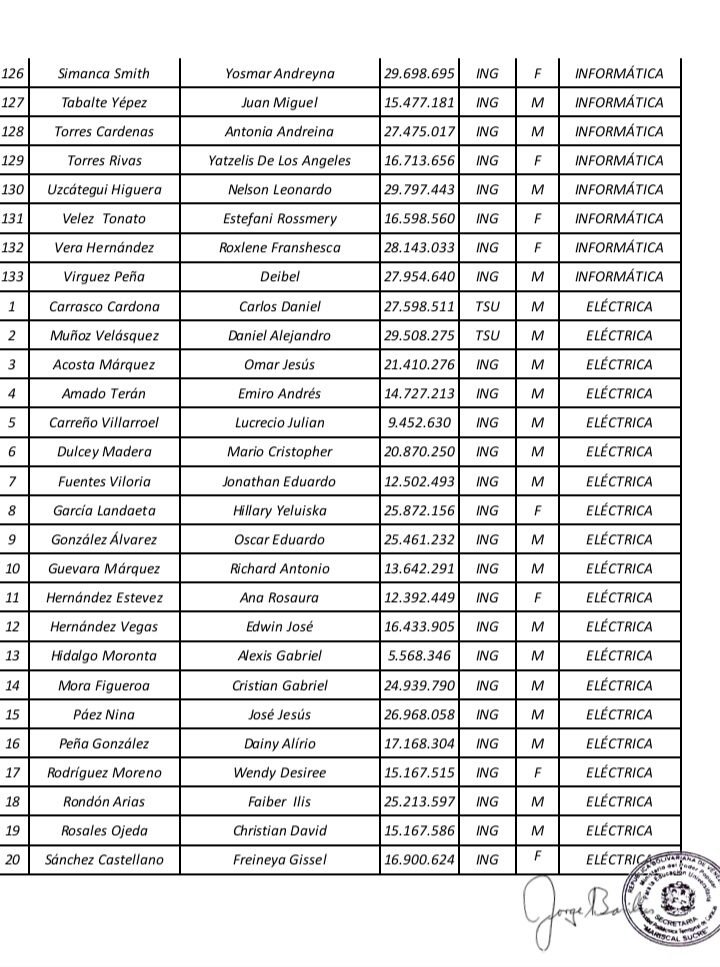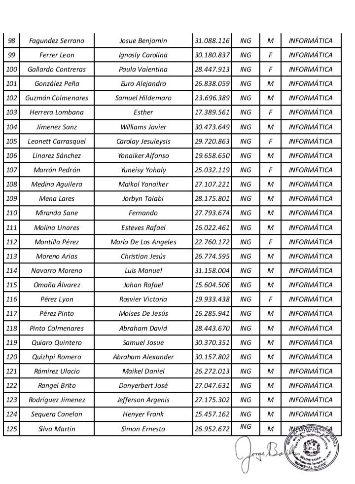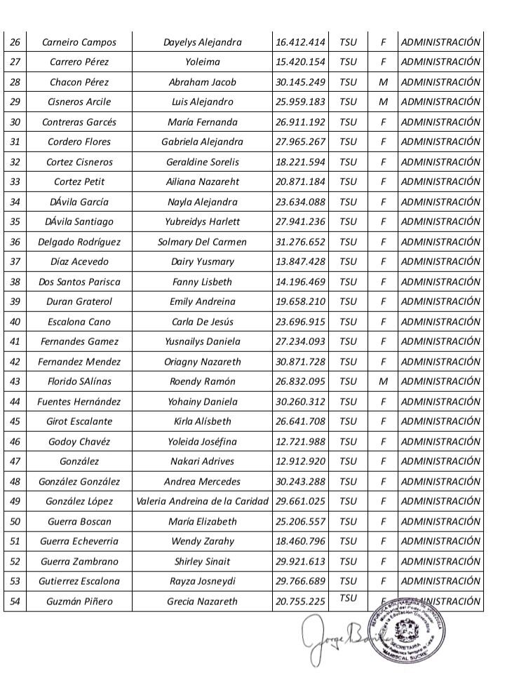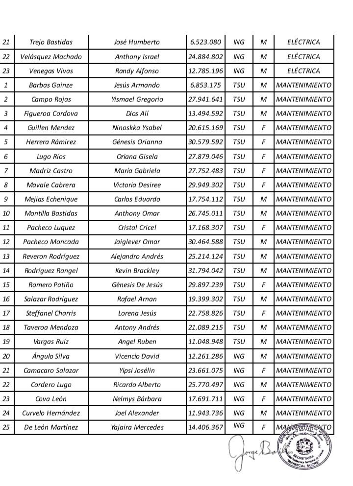 Prensa UPTECMS.- Siguiendo instrucciones del rector MSc. Jaime Márquez, a continuación se publica listado de la VII Promoción de los Programas Nacionales de Formación (PNF) y la III Promoción de Especialistas en Gestión de Mantenimiento de la Universidad Politécnica Territorial de Caracas Mariscal Sucre (UPTECMS)