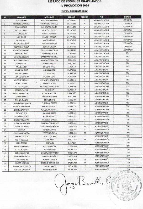 LISTADO DE GRADUANDOS IV PROMOCIÓN 2024
